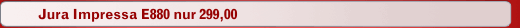 Die Espressomaschine Jura Impressa E 880 braut Ihnen leckere Kaffeespezialitäten. Mit dem Rotary Switch haben Sie bei der Bedienung im wahrsten Sinne des Wortes "den Dreh raus". Und mit der Easy-Auto-Cappuccino-Düse gelingt jeder Cappuccino oder Latte Macchiato perfekt. Das einzigartige Display-Sprachsystem gibt benutzerfreundliche Hinweise. Sechs verschiedene Kaffeestärken lassen sich einfach programmieren. Sie arbeitet im Ein- und Zwei-Tassen-Betrieb und bleibt dank Reinigungsprogramm, Spülprogramm und Entkalkungsprogramm hygienisch sauber.
